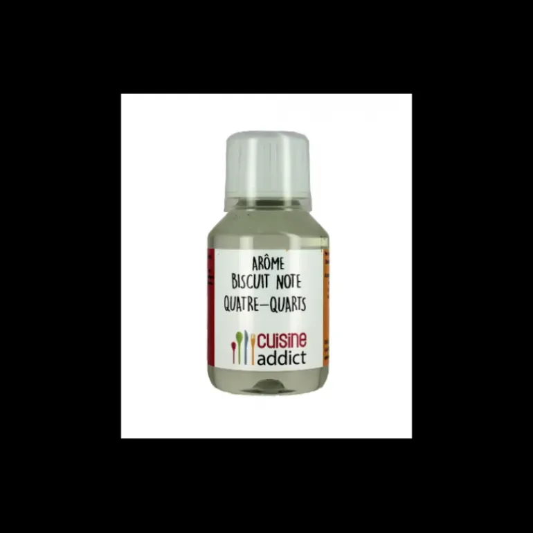 L’arôme Alimentaire Biscuit Quatre-quarts 1L Cuisineaddict vous permet avec seulement quelques gouttes, de parfumer vos desserts sucrés d’une douce saveurs de nos goûters d’enfance : le biscuit quatre quarts.