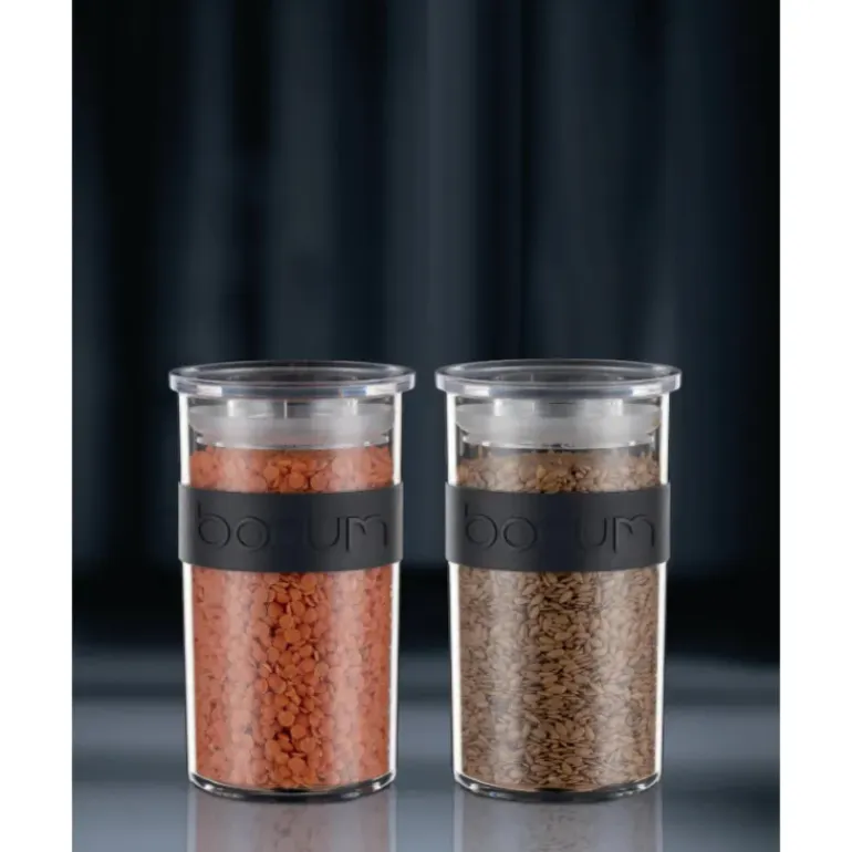 Idéal pour les produits secs (farine, sucre, pâtes) comme pour les produits liquides, qu’ils soient chauds ou acides. Pouvant aller au lave-vaisselle le Bocal PRESSO Bodum 250 ml est transparent avec une bande noire qui rendra ce Bocal Plastique Alimentaire.