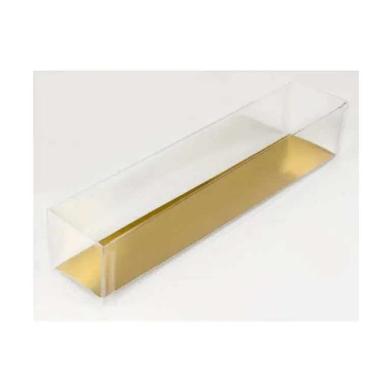 Mettez en valeur vos macarons dans une boîte à macaron prête à offrir ou à trôner en vitrine. Les macarons prendront place au sein de la boîte à macaron sur un fond en carton doré. Le couvercle de l’emballage macaron est en PVC entièrement transparent, vos macarons sont ainsi visibles tout en étant protégés. Cette boîte 9 macarons est d’une longueur de 24 cm ce qui vous laissera la place d’y glisser 9 à 10 macarons (en fonction de la taille de vos macarons).