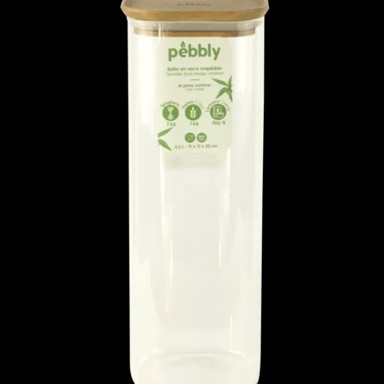 Boîte de Conservation en Verre et Bambou Carré 2,2 L Pebbly