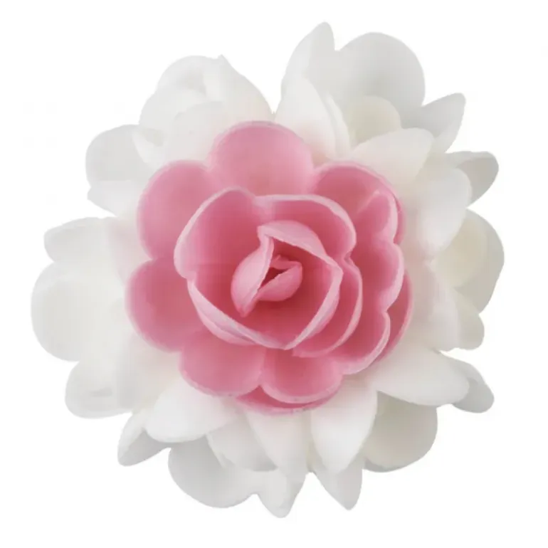 Parfaits pour embellir un gâteau, ces bouquets de Fleurs en Azyme comestible Rose et Blanc sauront apporter une touche de romantisme à vos pâtisseries.