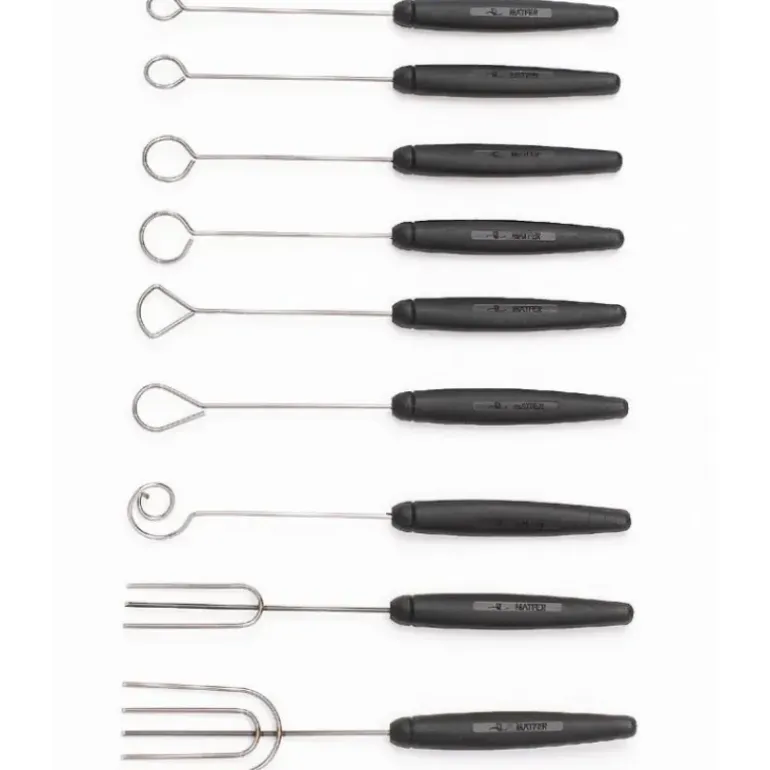 La broche à tremper est utilisé pour tremper des préparations en confiserie ou des fruits dans du chocolat en évitant de laisser des marques. La broche à tremper permet de réaliser un enrobage chocolat parfait et sans trace.