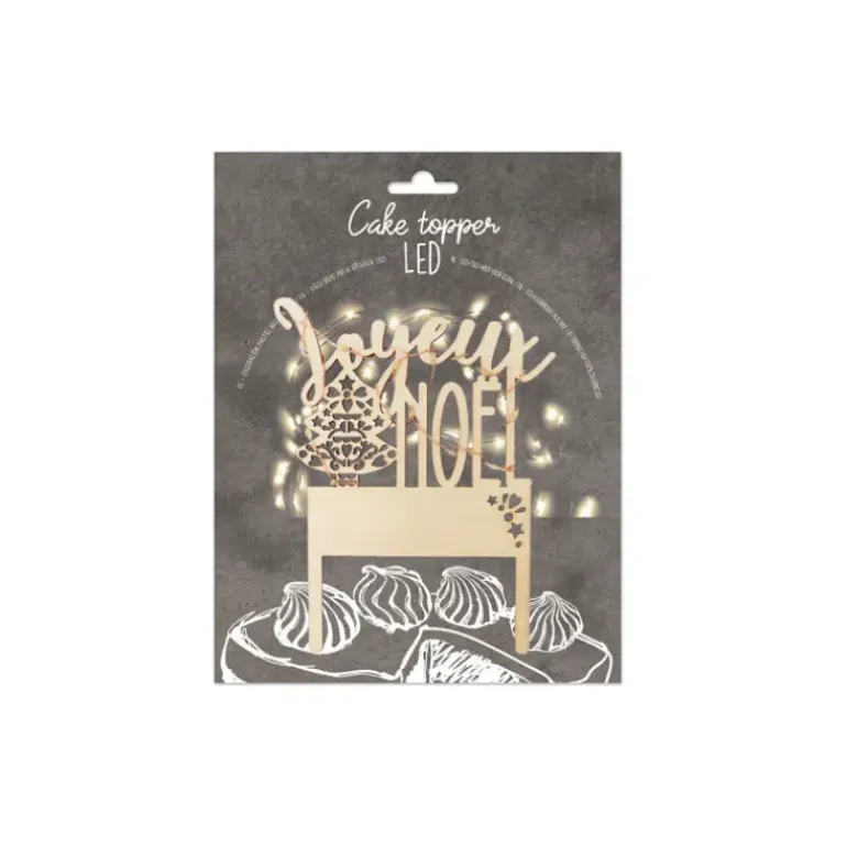 - Conditionnement : cake topper Joyeux Noël led + 2 piles CR2032