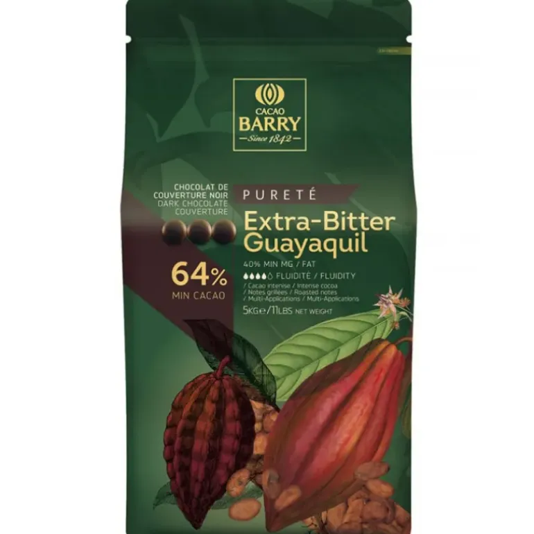 Chocolat de couverture noir en pistoles Extra-Bitter Guayaquil 64% de cacao 5 kg