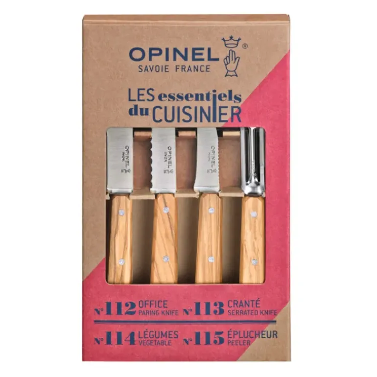 Coffret 3 Couteaux de Cuisine et un Eplucheur Olivier Les Essentiels Opinel