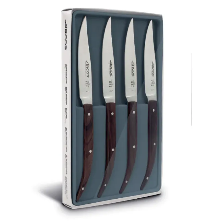 Besoin de couteaux qui peuvent découper une pièce du boucher facilement ? Découvrez le coffret de 4 couteaux à steak proposé par Arcos, vous ne serez pas déçu !