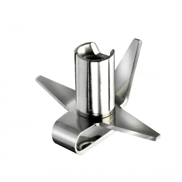 4 embouts accompagnent le mixeur plongeant Bamix : un couteau étoile (hacher, broyer, mouliner, piler…), un couteau hachoir (hacher plus ou moins finement), un disque mélangeur (mixer, émulsionner) et un disque fouet.