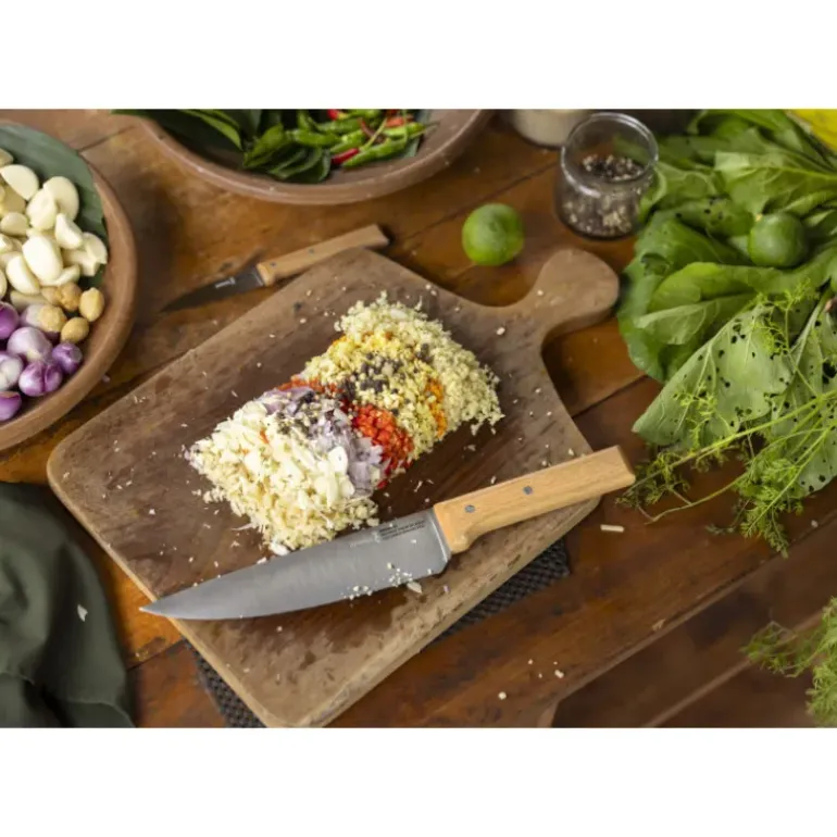 Le design de ce couteau de cuisine est travaillé pour être ergonomique : le manche offre une excellente préhension et la lame est stable. Instrument de découpe indispensable de toute cuisine, le couteau de chef Opinel est simple à aiguiser et à entretenir. Il vous accompagnera dans toutes vos recettes pour longtemps.