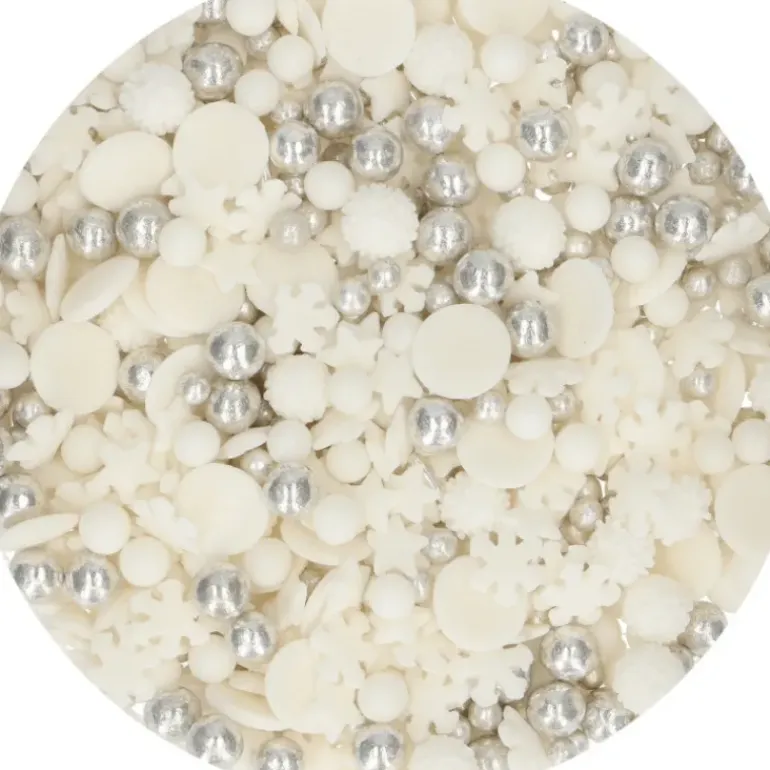 Décoration en Sucre Mélange Hiver Blanc et Argenté 50 g Funcakes