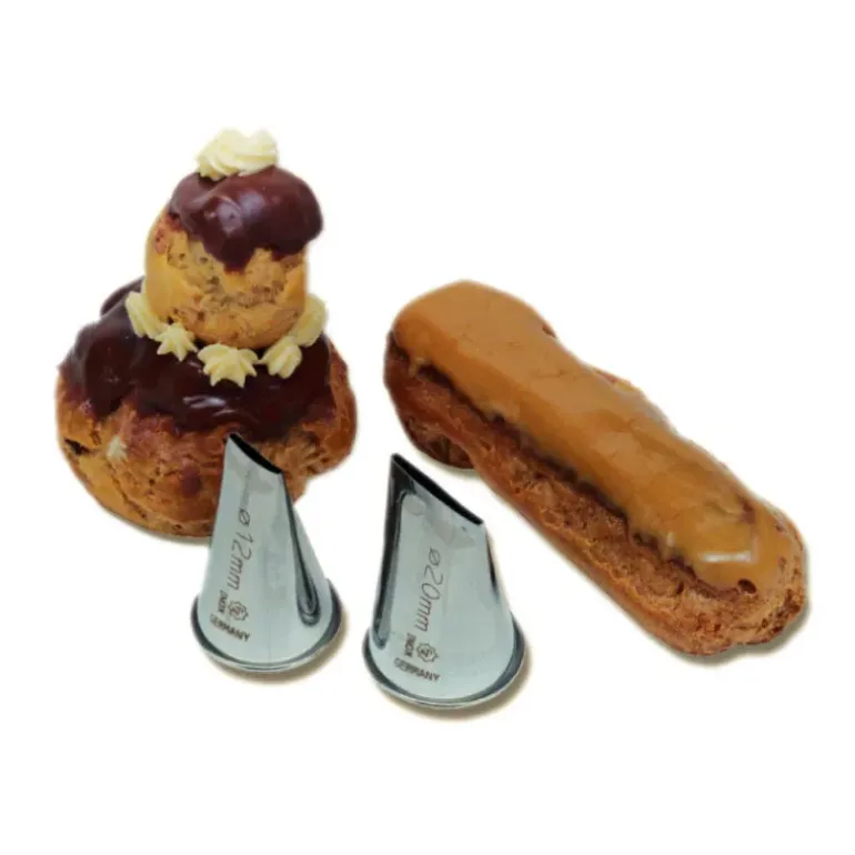 La douille à glacer permet de réaliser un glaçage lisse facilement sur toute la largeur de la douille. La douille à glaçage est particulièrement adaptée au glaçage des éclairs avec sa largeur de 14 mm.
