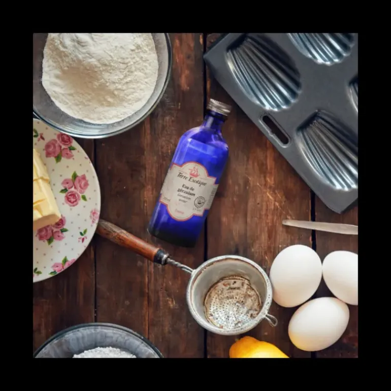 L’eau de géranium alimentaire va venir ajouter des arômes floraux et délicats à vos préparations, de plus l’eau géranium contient aussi des nuances légèrement citronnées et épicées.