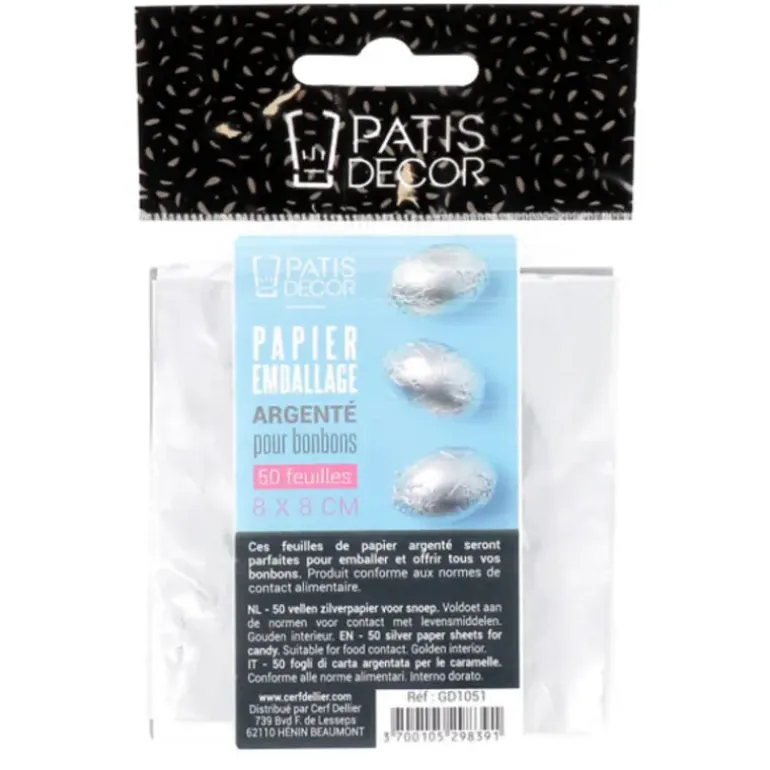 Emballage Pour Bonbons Argenté 50 feuilles Patisdécor