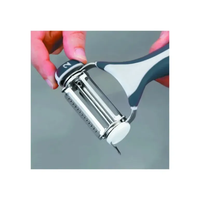 Pratique et utile, il prend peu de place : l’éplucheur à légumes 3 lames est simple à utiliser. Il est composé d’une molette rotatives qui vous permet de changer de lame quand vous le souhaitez… Pour peler vos tomates avec sa lame dentelée, préparer votre julienne de légumes, ou simplement éplucher vos légumes avec sa lame lisse, il répondra à toutes vos envies ! Son manche ergonomique vous promet une prise en main facile et un usage plus que simple.