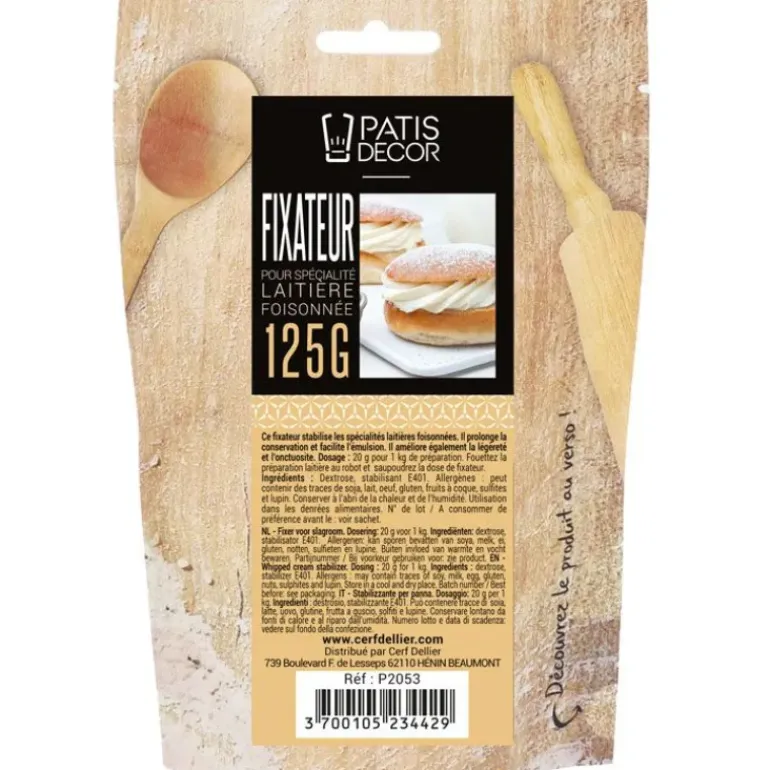 Le Fixe Chantilly stabilise la chantilly et la crème fouettée. Il prolonge la conservation et facilite l’émulsion. Il améliore également la légèreté et l’onctuosité de vos crèmes préparées.