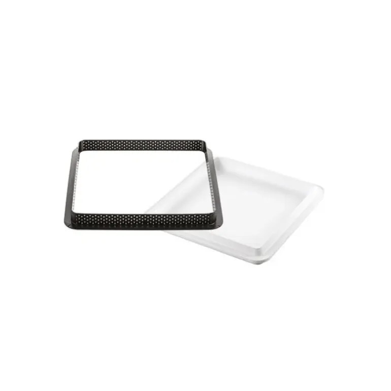 Adepte des pâtisseries ? Les tartes sont vos péchés mignons ? Troquez votre moule à tarte rond traditionnel pour un moule ultra moderne et élégant. Et pour cela, rien ne vaut les moules à tarte Silikomart ! D’une qualité inconditionnelle, les plus grands pâtissiers se les arrachent afin de présenter des réalisations qui sortent de l’ordinaire. En effet, grâce au Kit de Pâtisserie comprenant un moule en silicone doté d’une empreinte pouvant contenir jusqu’à 560 ml et d’un cadre perforé carré, réalisez vos plus belles tartes carrées ! Le moule silicone est idéal pour contenir un crémeux ou une mousse qui constituera la garniture de votre tarte. Quant au cadre à tarte perforé 20 cm, il est parfaitement adapté à la réalisation de votre base croustillante et fondante. Vous pouvez être sûr que votre cuisson sera totalement homogène puisque les petits orifices présents sur le cadre composite permettent à l’air chaud de circuler.