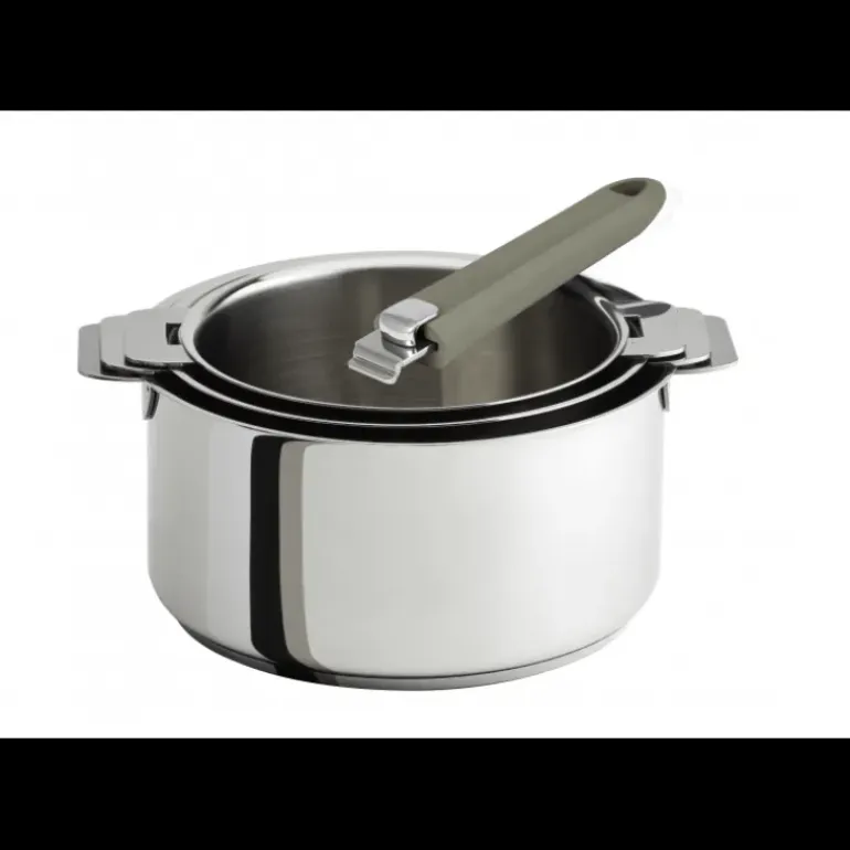 Lot de 3 Casseroles inox avec Poignée Taupe Mutine Amovible Cristel