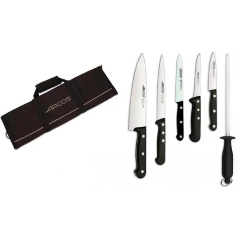 Mallette de cuisine 5 couteaux de cuisine et un fusil Arcos Universal noir