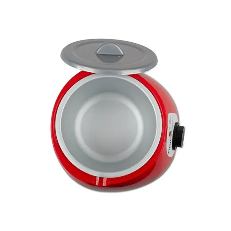 Avec la mini trempeuse à chocolat rouge garder votre chocolat de couverture fondu à température de travail devient chose facile. Le bac en aluminium de cette trempeuse petit format est d’une contenance de 1,8 L et vous permettra également de maintenir au chaud vos sauces, nappages, fondants ou autres préparations.