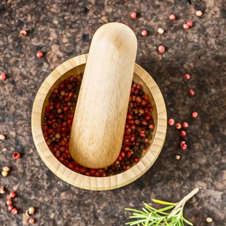 Piler avec simplicité vos herbes aromatiques et vos épices pour les réduire en poudre ou en pâte grâce à ce Mortier Pilon Bambou. Idéal pour préparer un pistou ou un aïoli le Pilon et Mortier est fabriqué à partir de bambou 100% naturel, sans Bisphénol A.