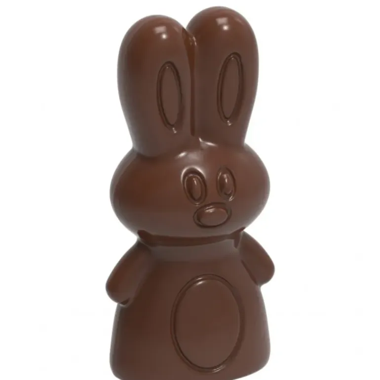 Le moule à chocolat polycarbonate se compose de 8 empreintes pour mouler le devant du lapin, et de 8 empreintes pour mouler le dos.