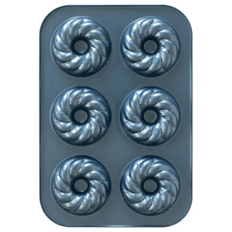 Les six empreintes du moule à donuts sont parfaites pour des parts individuelles. Accompagnez un thé ou un café de gâteaux gourmands grâce au moule pour gâteaux donuts torsadés Nordic Ware.