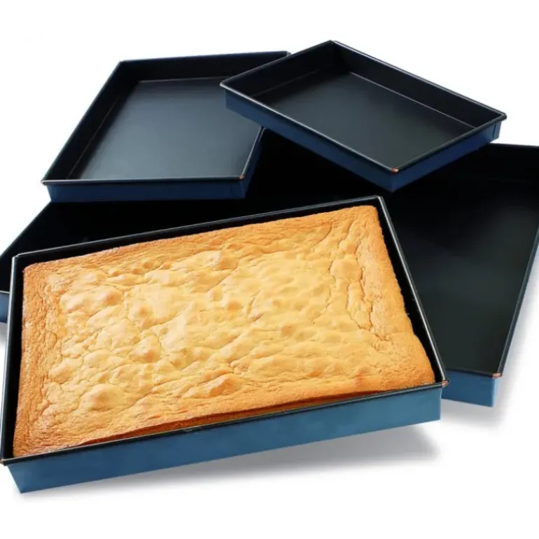 La caisse à génoise est pourvue d’un fil de renfort au niveau du bord plié pour prévenir de toute cassure due à la dilatation par la chaleur du four. Le moule est aussi rendu indéformable, inoxydable, et lavable au lave-vaisselle grâce au matériau composite utilisé lors de la fabrication : Exopan.