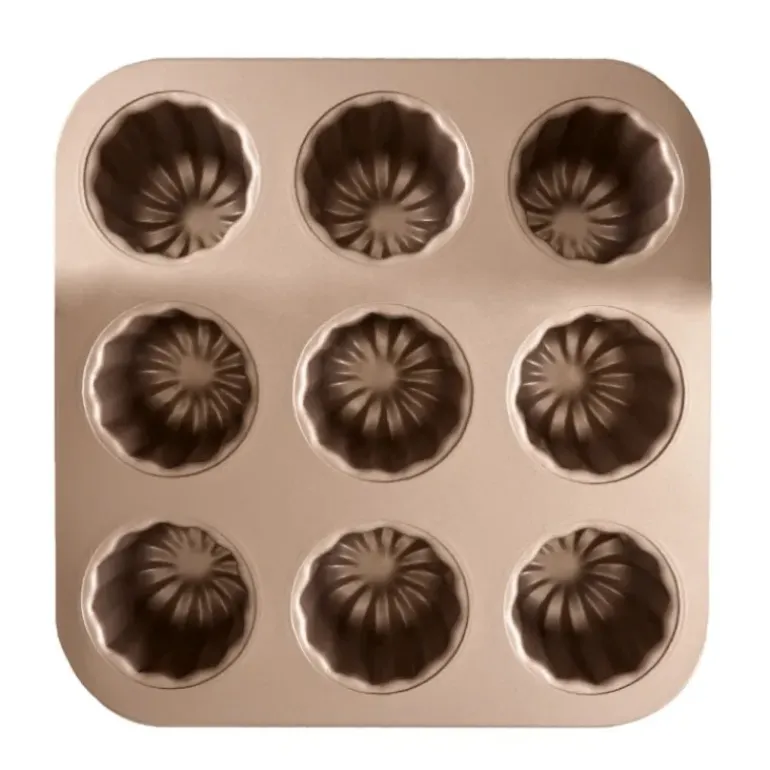 Optez pour ce moule à cannelés antiadhésif pour déguster de succulant cannelés. Ce Moule Cannelés Antiadhésif 26,5 cm x H 6 cm Scrapcooking doté d’une qualité professionnelle, vous permettra de confectionner 9 cannelés à la fois de 7 cm chacun.