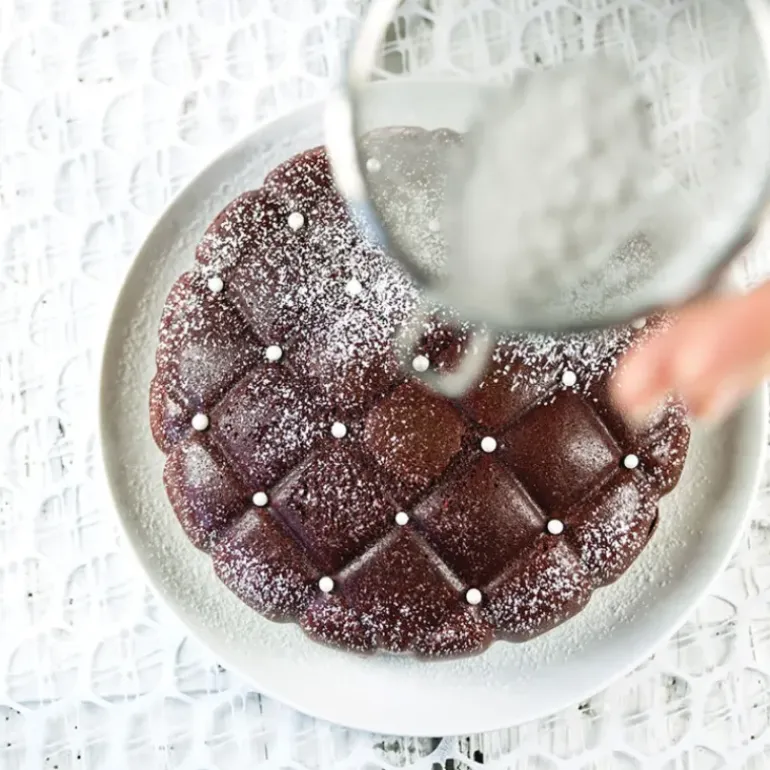 Afin de faire ressortir le motif matelassé du Moule silicone Eleganza Silikomart 3D Design, pourquoi ne pas opter pour un colorant alimentaire en bombe ? Ce dernier va lui apporter un élégant effet velours. Terminez par quelques billes en sucre et savourez !
