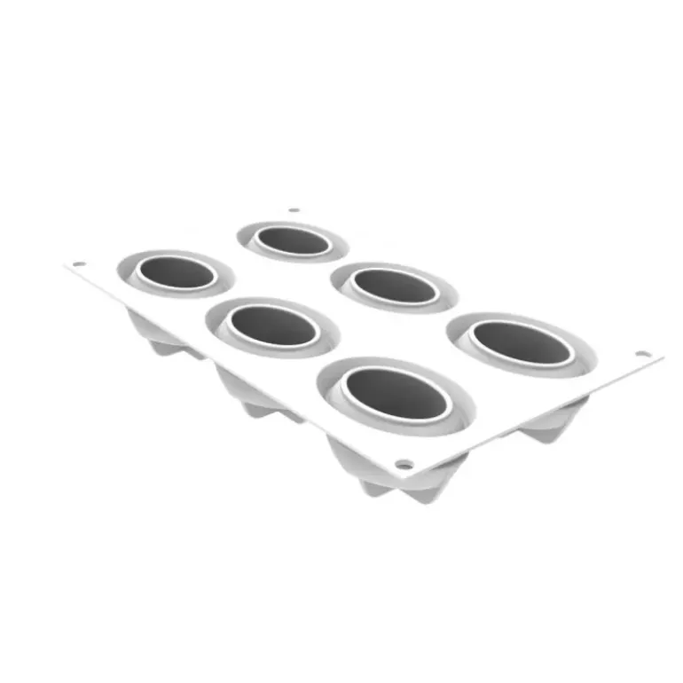 Ce moule silicone aux 6 empreintes identiques en forme ovale vous permet de créer des desserts individuels enchanteurs, aux allures de nébuleuses délicates. Chaque empreinte de ce moule Silikomart, d’une capacité de 85 ml, est idéale pour confectionner des douceurs aériennes qui émerveilleront vos convives.