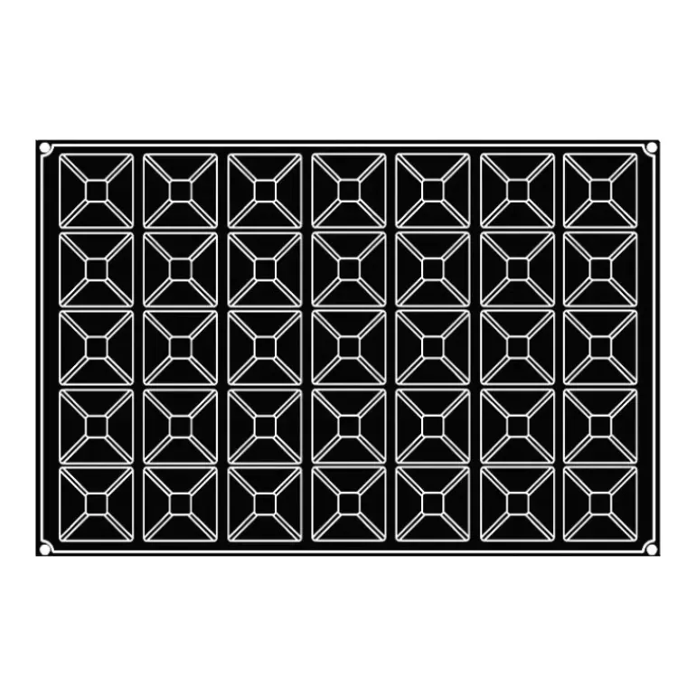 Que ce soit par ses propriétés anti-adhérentes ou par la cuisson homogène qu’il permet, ce moule professionnel vous permettra d’avoir des 35 Pyramides identiques en un tour de main.