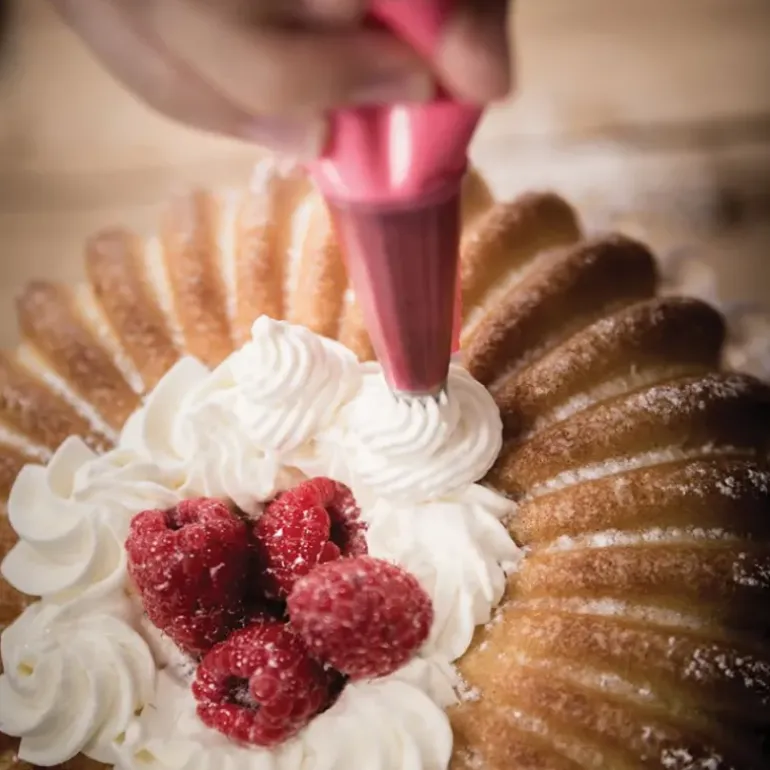 Préparez un savarin à la forme originale grâce au Moule Silikomart 3D Design. Le Moule Silicone Raggio mesure 19,5 cm de diamètre pour 6,8 cm de haut.