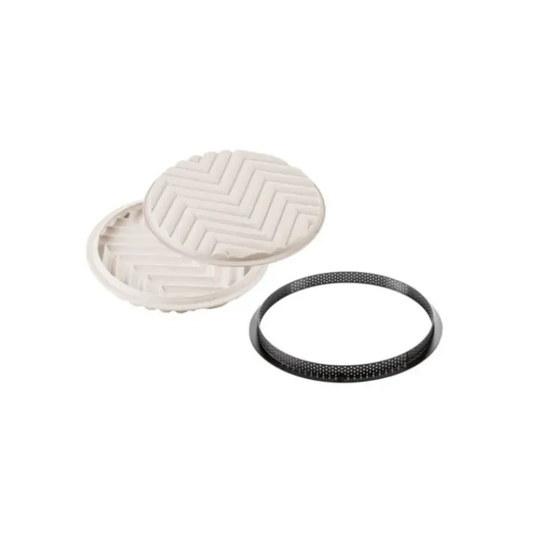 - Kit comprenant 1 moule silicone + 1 cercle à tarte perforé