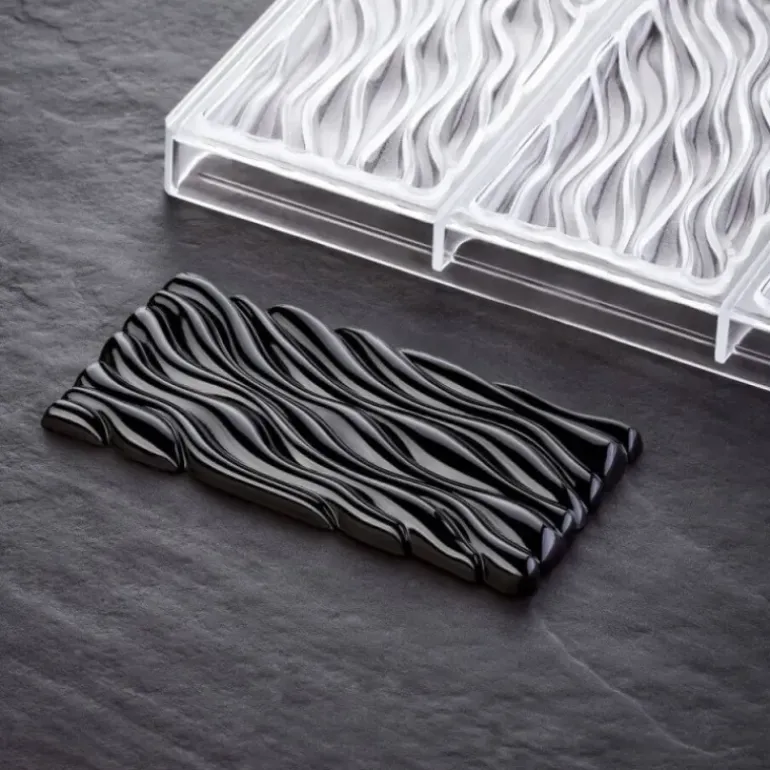 Sélectionnez des moules de qualité professionnelle pour confectionner des chocolats époustouflants. Pavoni vous offre la possibilité de réaliser des tablettes de chocolats originales et délicieuses sans la moindre difficulté avec son moule à chocolat tablette Fluid Vallée. Le polycarbonate dont est composé ce moule assure un démoulage en toute simplicité ainsi qu’un aspect brillant et lisse en surface. Profitez de cette qualité supérieure quel que soit votre niveau de maîtrise du chocolat. En effet, le moule Fluid Vallée est facile à utiliser : tempérez le chocolat, badigeonnez-en les trois empreintes du moule, et laissez bien prendre au frais.