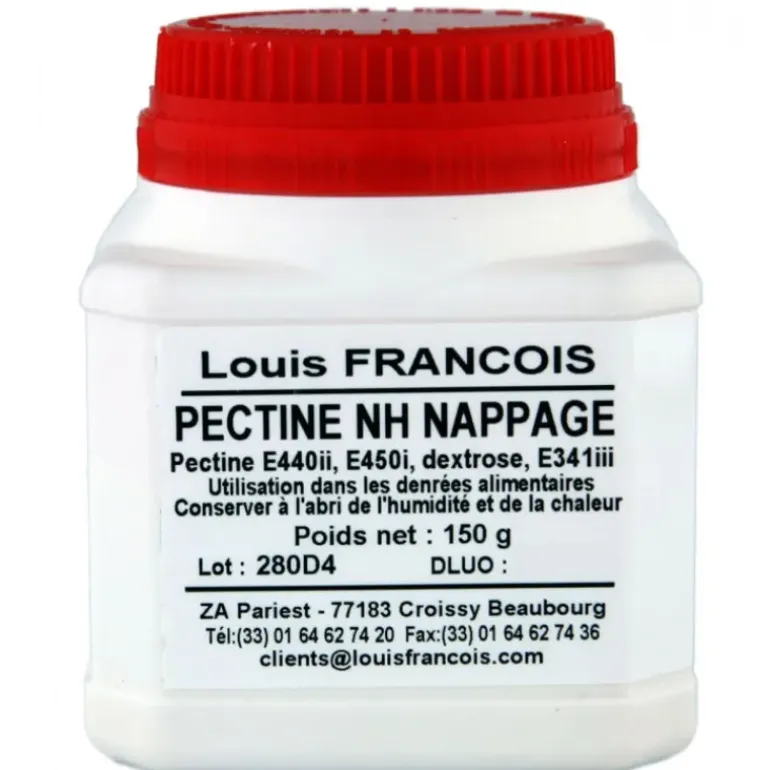 Conditionnée dans un pot refermable de 150 g, la Pectine NH Louis François s’adresse aussi bien aux particuliers qu’aux professionnels. Utilisée principalement pour les nappages avec fruits et les fourrages, elle apporte une finition brillante, une texture ferme et agréable.