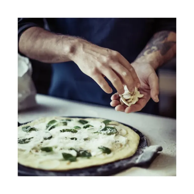 Cuisinez, faites cuire, et présentez vos pizzas maison avec une grande qualité en utilisant la plaque à pizza Emile Henry.