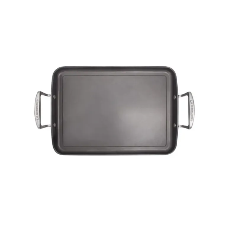 La Plancha géante fonte 34 x 25 cm Le Creuset sera votre plat idéal. Parfaitement adapté aux cuissons des aliments délicats tels que poissons, viandes et légumes d’été, cette plancha de grande taille saisit les aliments sans ajout de graisse. Le plat est utilisable sur tous les feux (sauf barbecue).