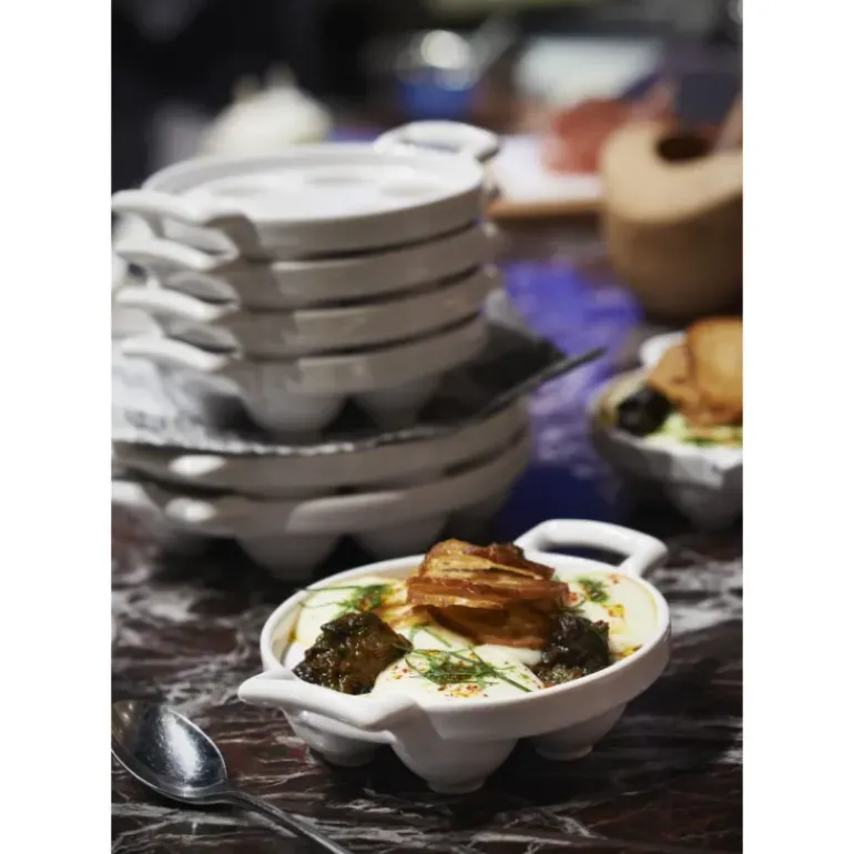 Fabriqué en porcelaine culinaire d’origine 100% naturelle, le plat à escargots Belle Cuisine est recouvert d’un émail spécial pour imiter parfaitement la fonte et donner un aspect vintage et tendance à votre plat tout en conservant les nombreux avantages qu’offre la porcelaine Revol.