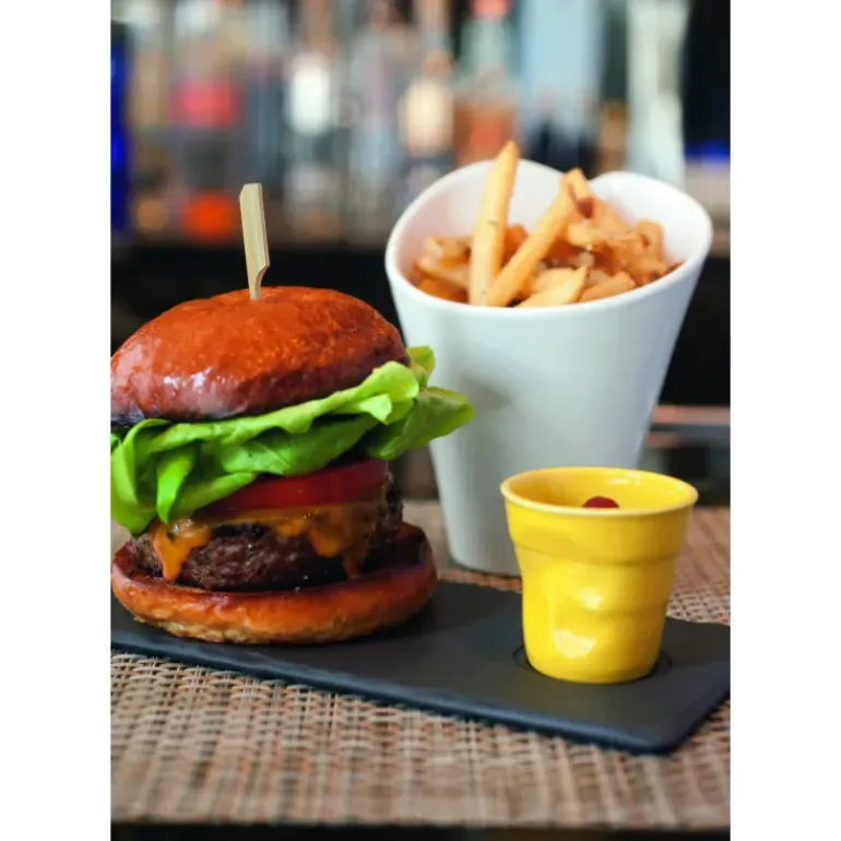 Cette assiette, dotée d’une encoche de 5 cm de diamètre, vous permettra de réaliser de belles assiettes avec un gobelet Revol 8cl dans lequel vous pourrez verser Espresso, sauce et autres préparations.