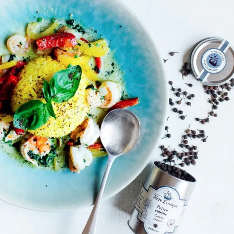 Le poivre cubèbe est originaire d’Indonésie, ce poivre noir se caractérise par son goût qui allie saveur fumée, fruitée et mentholée à la fois. Faites voyager vos invités grâce au poivre de chez Terre Exotique.
