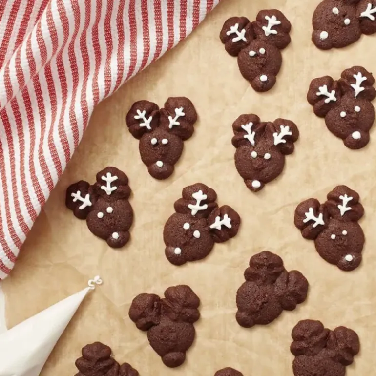 Pour décorer les biscuits confectionnées à l’aide de la Presse à Biscuits Wilton, attendez qu’ils soient complètement refroidis avant de les décorer avec du colorant en gel ou du chocolat fondu.
