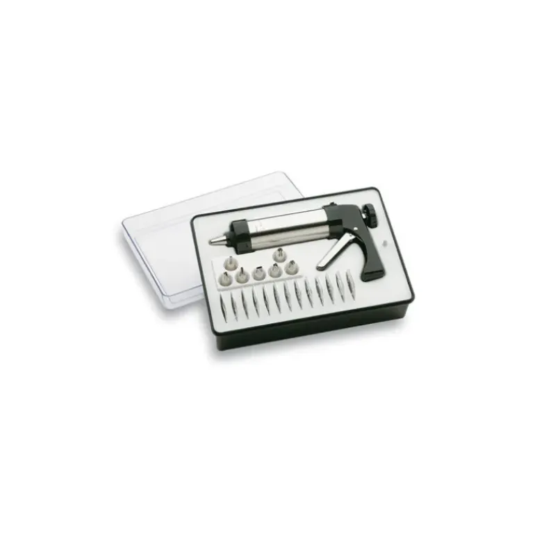 Sous forme de seringue, cette presse à biscuits sera idéale pour confectionner de délicieux biscuits de la forme de votre choix : sapin, coeur, ou encore trèfle à quatre feuilles.
