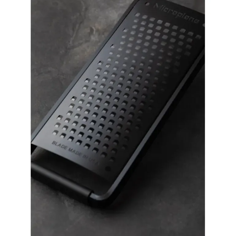 Issue de la dernière collection Microplane : Black Sheep, cette râpe Gros Grains possède un style entièrement noir qui attire le regard. Pour les personnes soucieuses des apparences, cette râpe ne déçoit pas. Elle reflète à l’extérieur la qualité de sa conception.