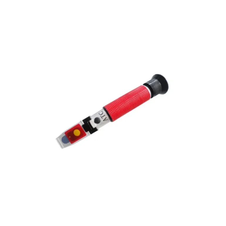 - Utilisation : Placez une goutte d’échantillon de liquide sur le prisme, refermez le cache puis lisez immédiatement le résultat à travers l’oculaire. Nettoyez le prisme et essuyez-le après chaque mesure.