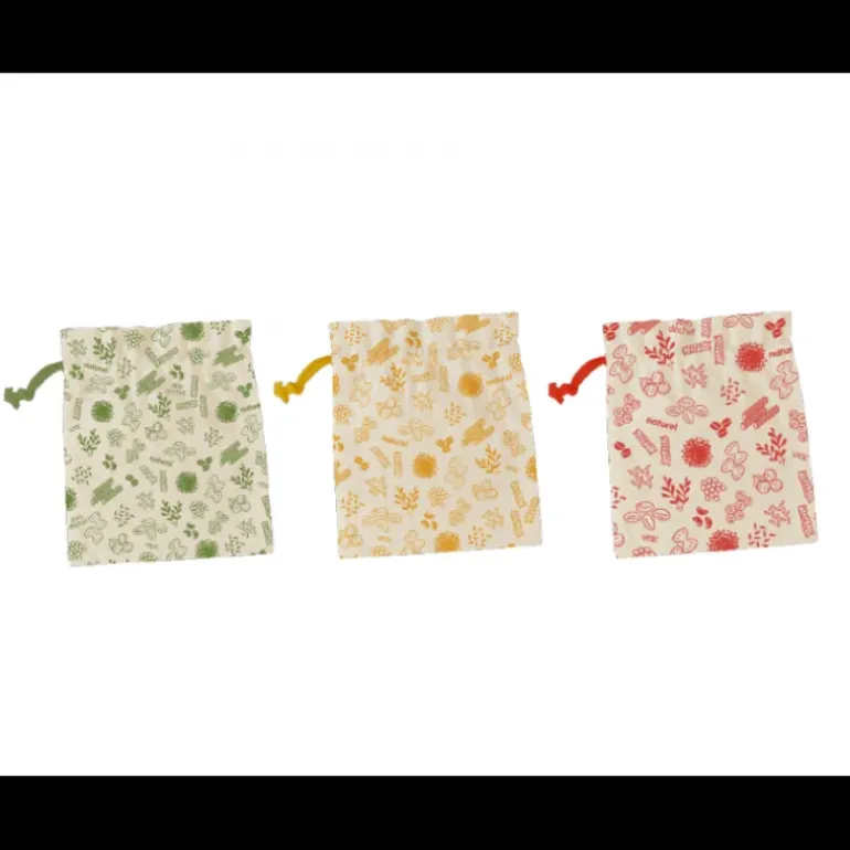 Chaque sac vrac, fabriqué en coton biologique, possède un cordon de resserrage pour maintenir les aliments en place le temps de vos courses et du transport. Les 3 sacs coton ont le même format (20 x 25 cm) mais se différencient par la couleur de leur motif (vert, jaune ou orangé). Pour faciliter toujours plus votre quotidien, les sacs vrac zéro déchet sont lavables à 40°C (à la main) et ainsi réutilisables.