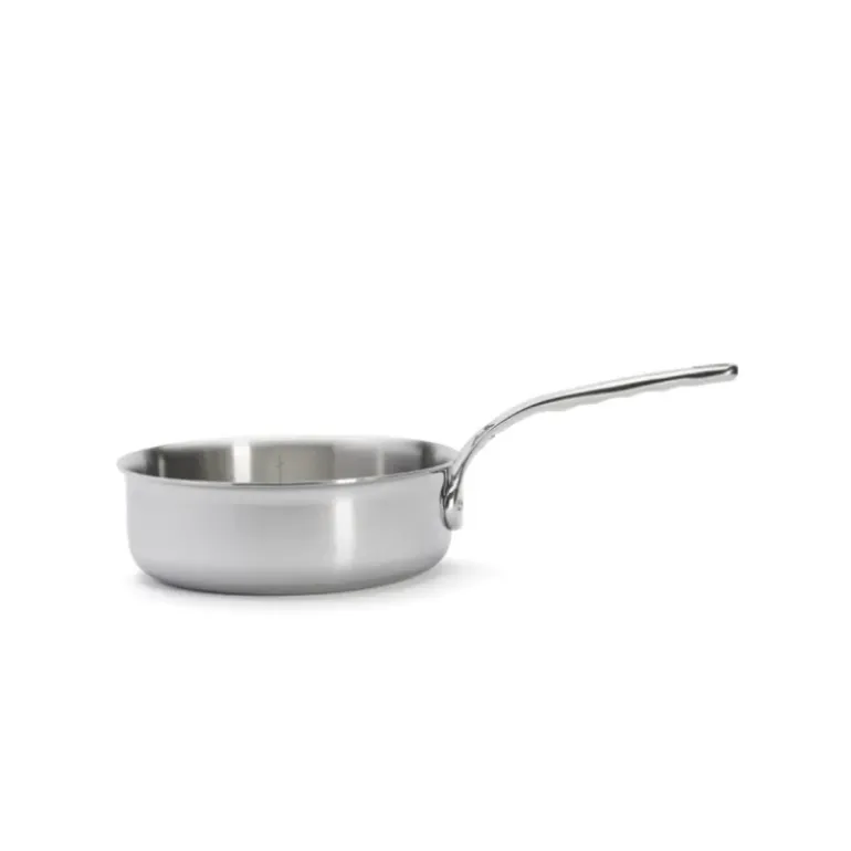 Dimensions généreuses, arrondi intérieur, bord verseur, manche ergonomique, lignes élégantes, matière multicouches (5 couches pour 2,8 mm d’épaisseur), fabriqué en France, tous feux et Induction.