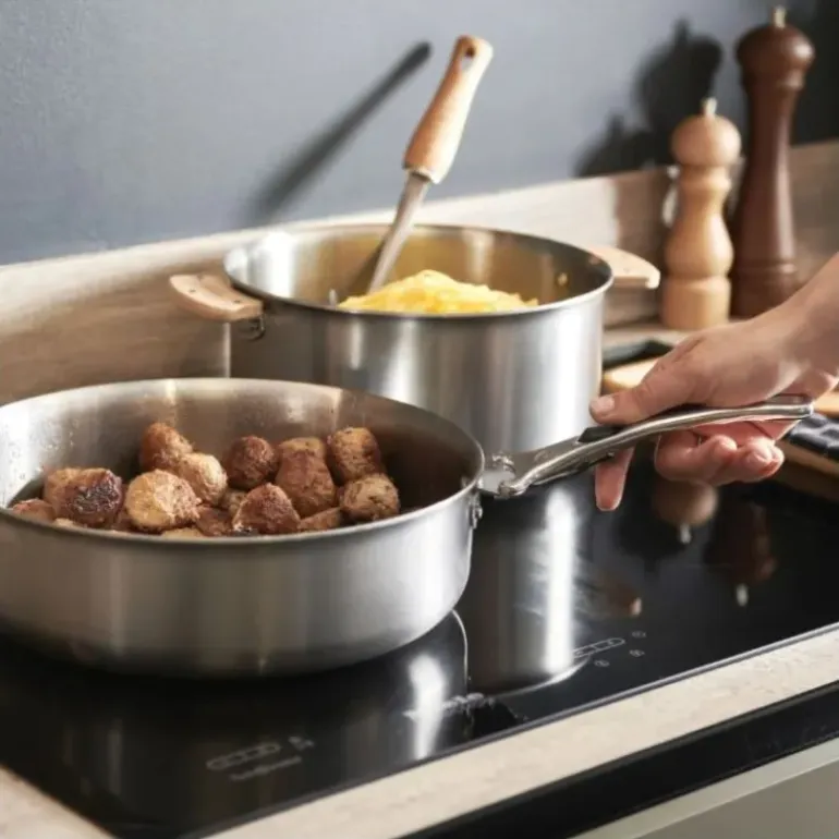 Profitez des deux embases en inox solidement rivetées pour y ajouter une poignée amovible ou des anses de la collection Loqy. Compatible avec tous les feux, y compris l’induction, la sauteuse 24 cm de De Buyer se montre aussi polyvalente que pratique.