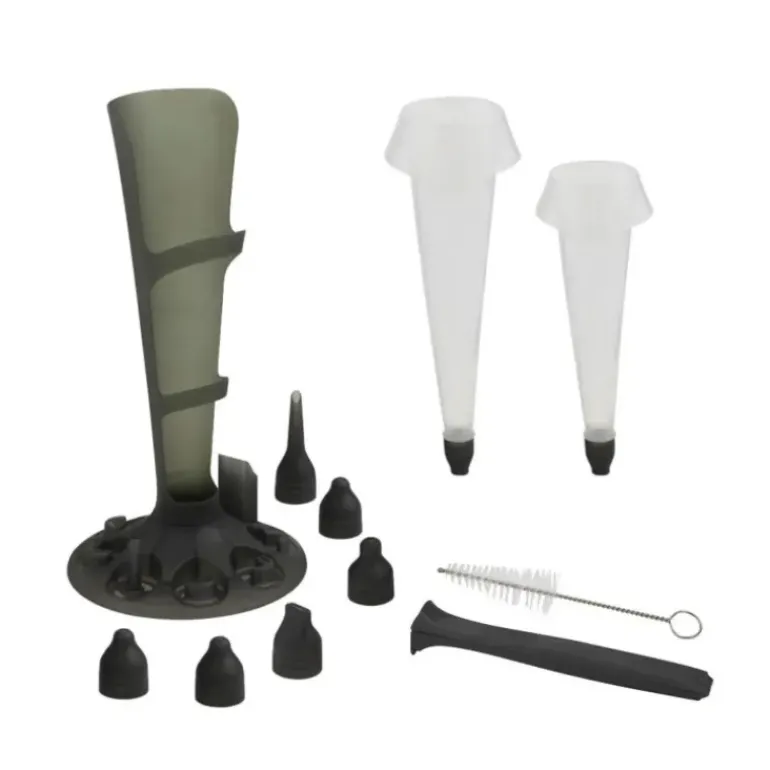 Les 12 douilles inox inclues vous permettent de varier les plaisirs avec des formes de pochages multiples : étoile, ronde, rose, pétale… Il y en a pour tous les goûts. Le support vertical pratique et les accessoires comme le goupillon de nettoyage, la pince et le bouchon hermétique rendent ce kit encore plus pratique et facile à utiliser.