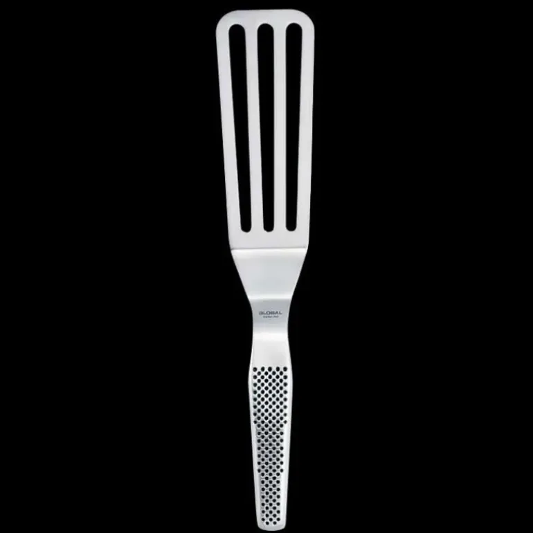 La spatule ajourée Global GS27 est flexible, légèrement coudée. Elle est idéale pour retourner les pièces larges ou les filets de poisson pendant la cuisson.