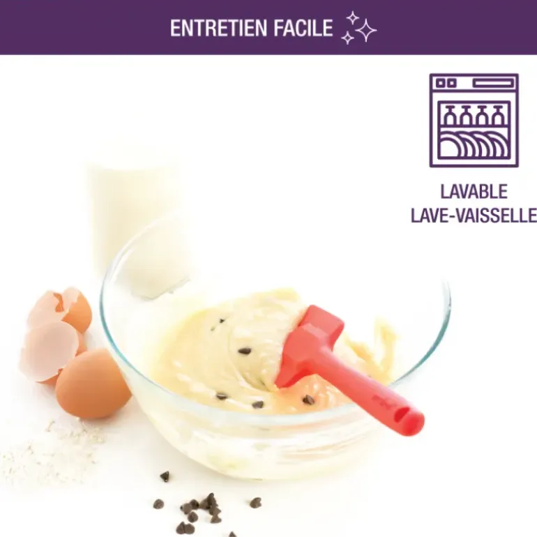 Cette maryse (ou spatule) en silicone est l’ustensile idéal pour racler les fonds de récipients en toute facilité.