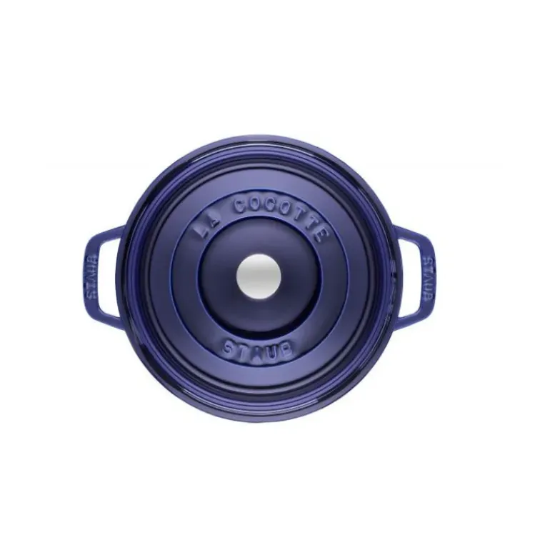 Succombez au charme de cette cocotte en fonte Staub d’un bleu intense. En plus d’une belle finition « Majolique » (émaux composés à 100% de verre) donnant à votre cocotte en fonte un aspect brillant et des nuances intenses propres à la cocotte Staub, cette cocotte ronde est composée de fonte d’une qualité supérieure et vous garantit ainsi une parfaite répartition de la chaleur en son sein. En dehors du feu, la qualité de la fonte sera une nouvelle fois appréciée pour sa capacité à conserver la chaleur des heures durant parfait pour poser la cocotte en fonte au centre de votre table durant le repas et ainsi ne plus se soucier du temps qui passe et du plat qui refroidit.